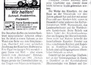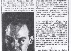 Hier gibt es eine Übersicht des künstlerischen Schaffens von Hanns Holtwiesche, gegliedert in Alben zu den Bereichen Plastik, Gemälde, Aquarelle und Sakralbau sowie eine Pressemappe mit gesammelten Zeitungsartikeln. Ein Doppelklick auf eines der Alben öffnet die jeweilige Bildergalerie. Eine fachkundige „Führung“ durch das Werk von Hanns Holtwiesche gegeben durch Prof. Dr. Christian Theuerkauff, finden Sie hier: Zur Führung
